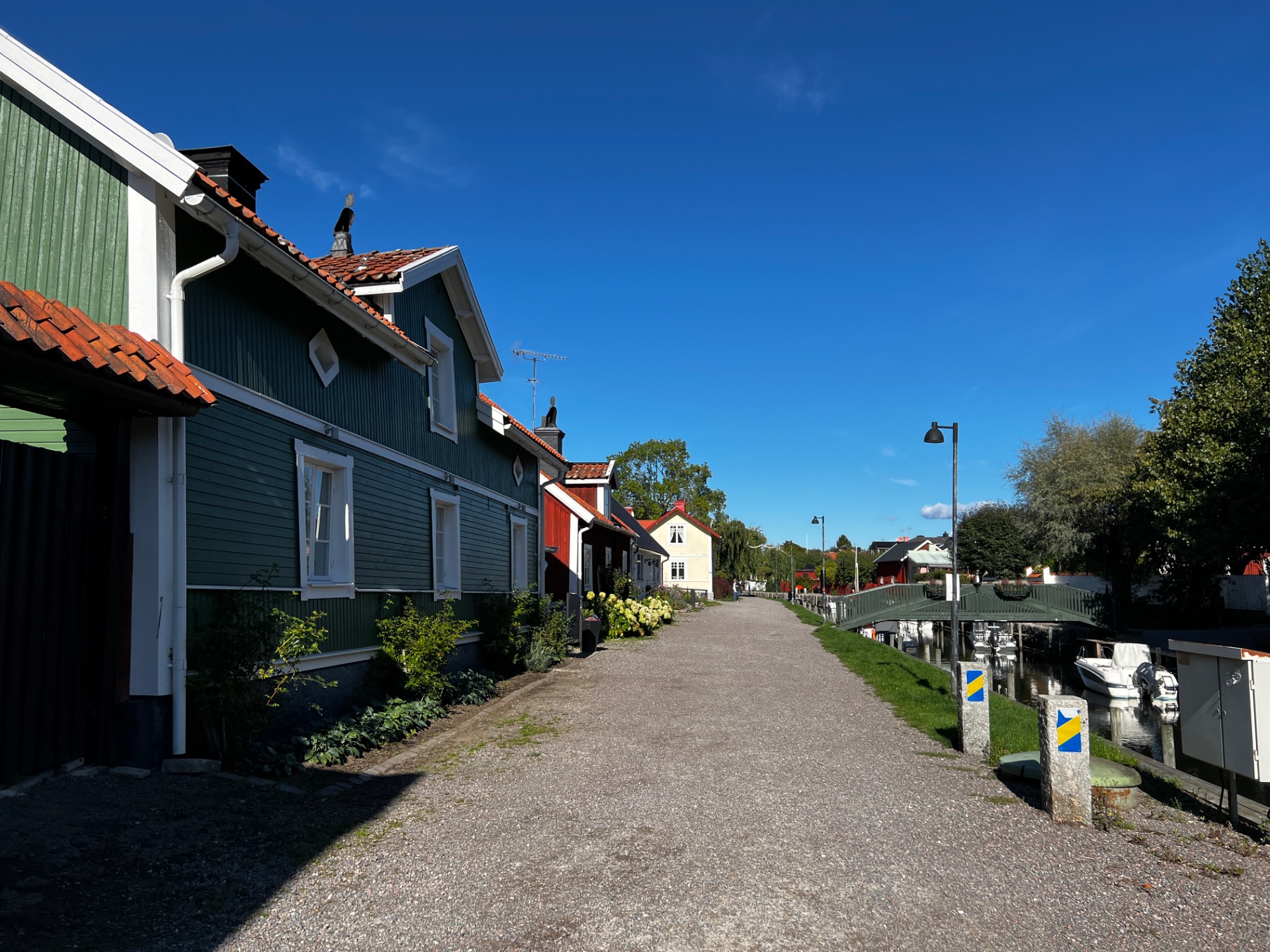 Torget och Torgbron i Trosa. Med Bokhandeln till vänster och Stadshotellet i fonden.